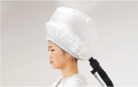 ②頭皮に優しい栄養成分たっぷりのホットクリームを頭皮と髪に塗布。